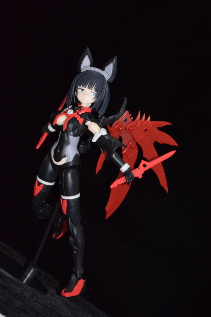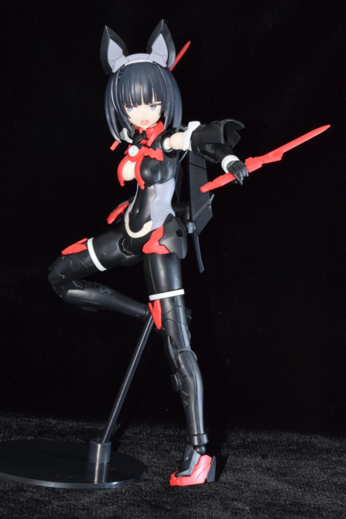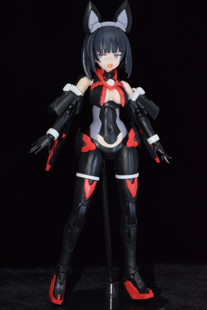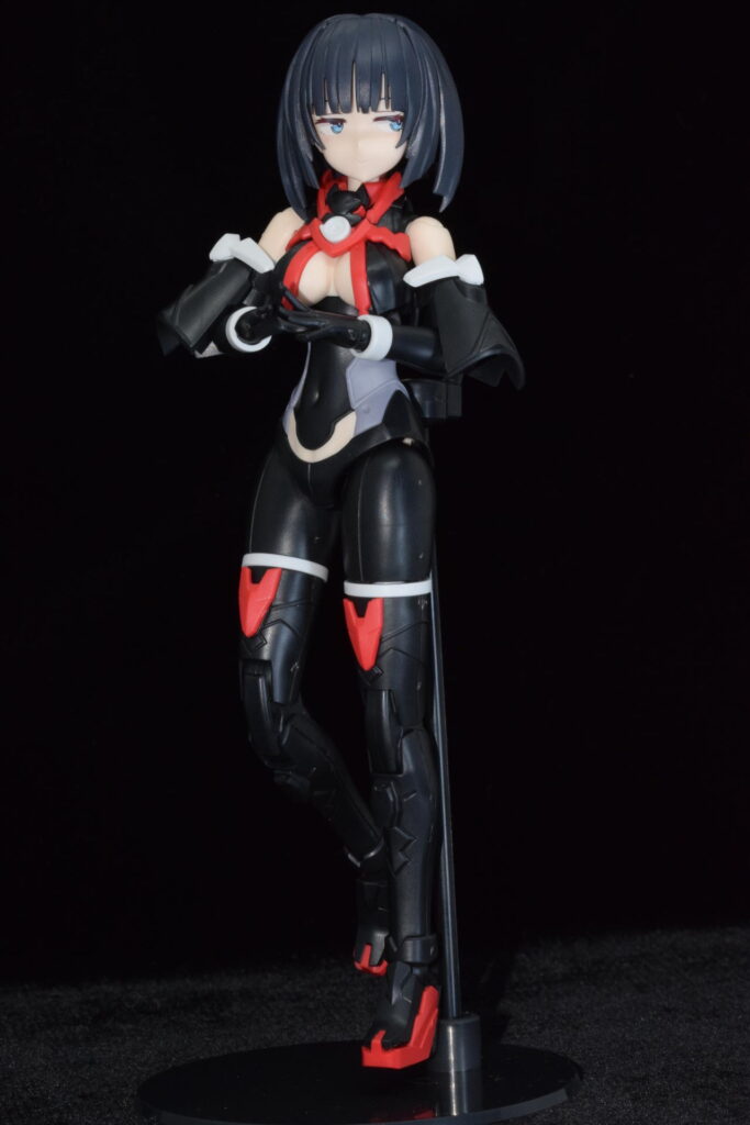 武装なし状態の姿。黒と赤の服です。