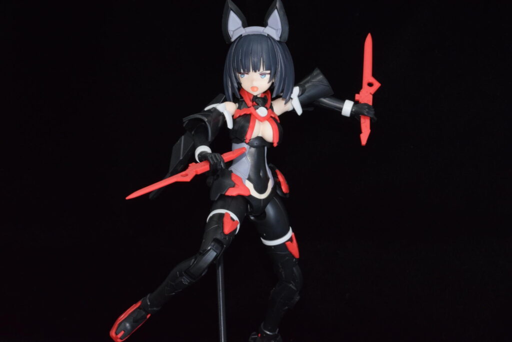 赤の双剣は、小太刀くらいの大きさなので、ダンまちのベルみたいな剣の持ち方が合うと個人的に思います。