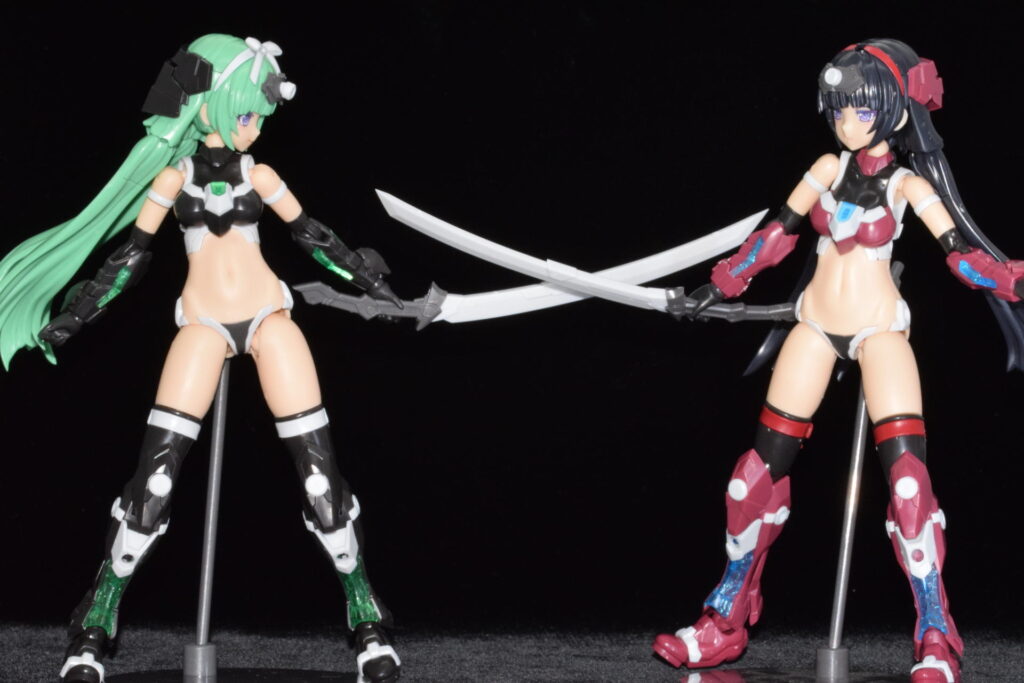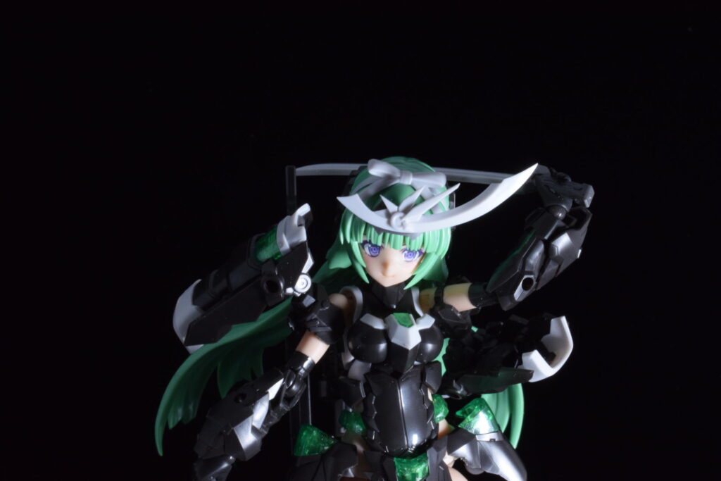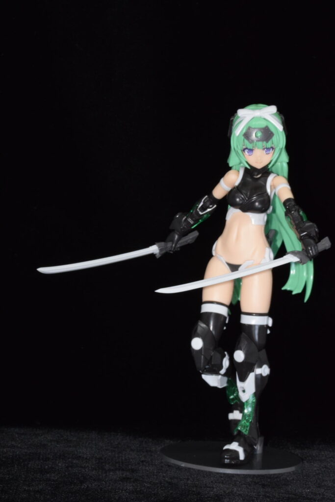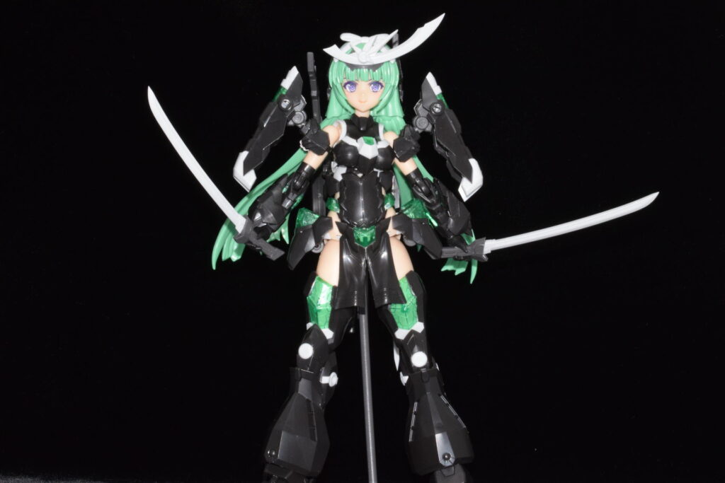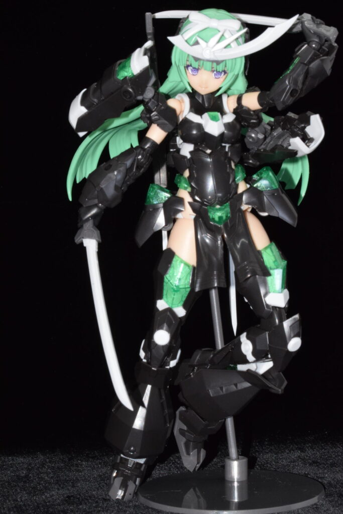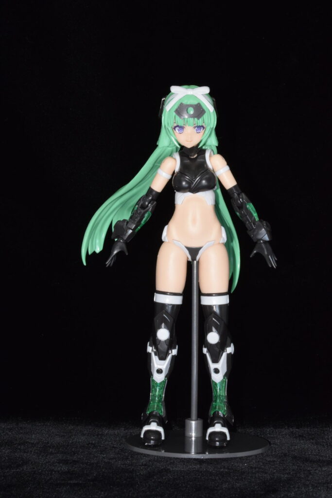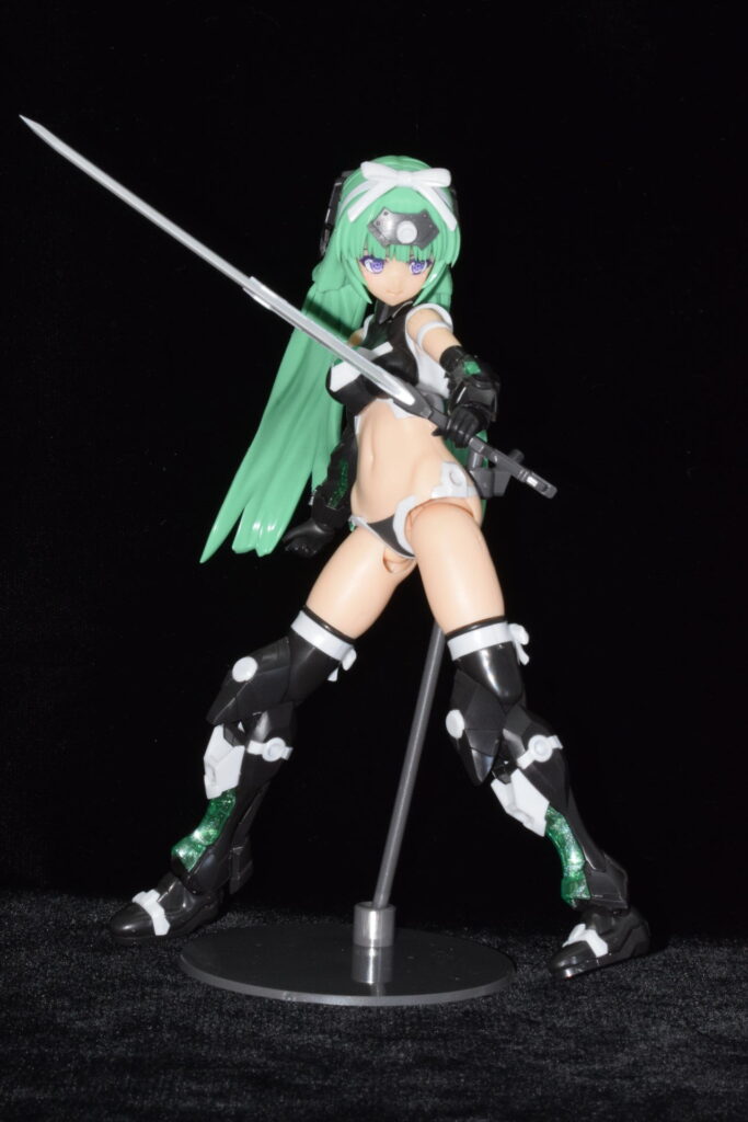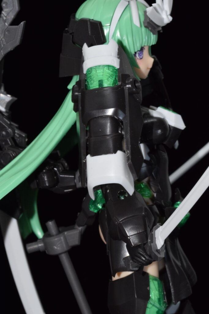 通常カラーが赤、青、黒だとすると、本プラモでは緑と黒です。
