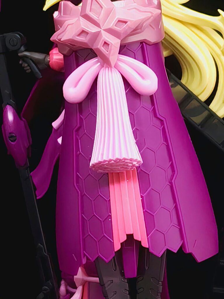 特徴的な形状のケープや脚部ユニット。複雑に重なり合うパーツ構成が、クリアパープルの美しさをより強調してくれます。