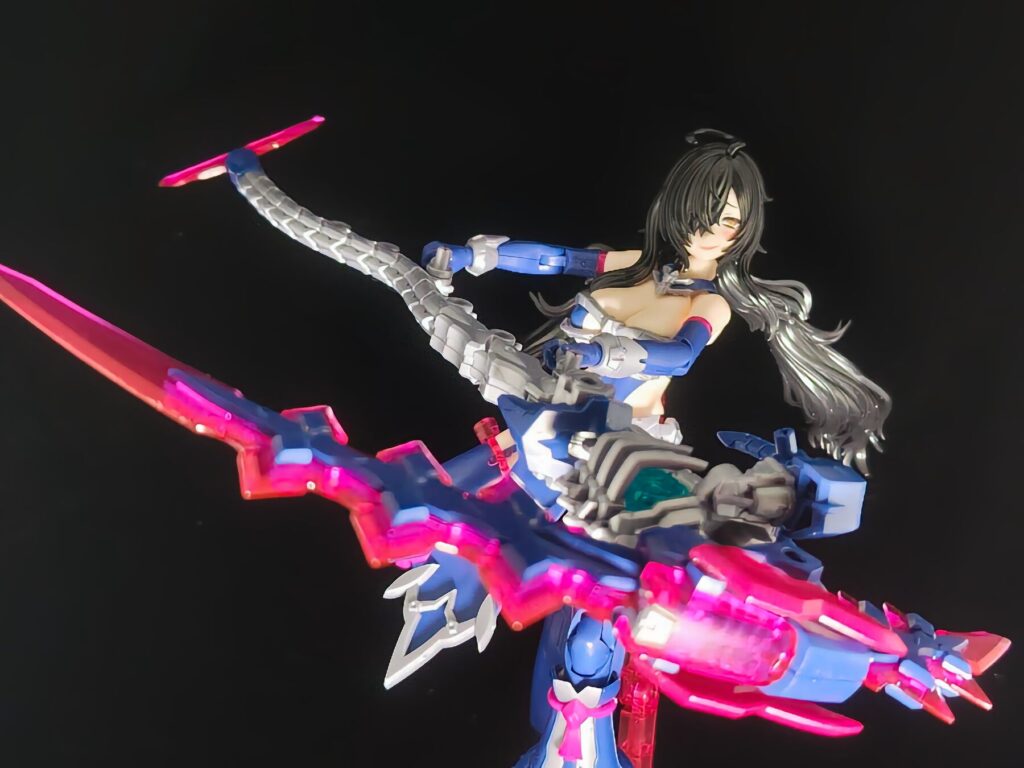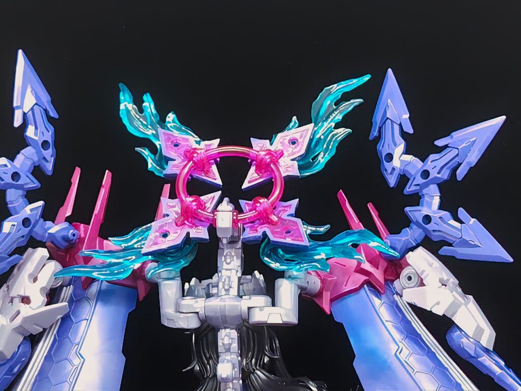 腕部から伸びる長大な袖状のパーツ。ボリュームがあるため、ポージングに独特の優雅さと迫力を与えてくれます。