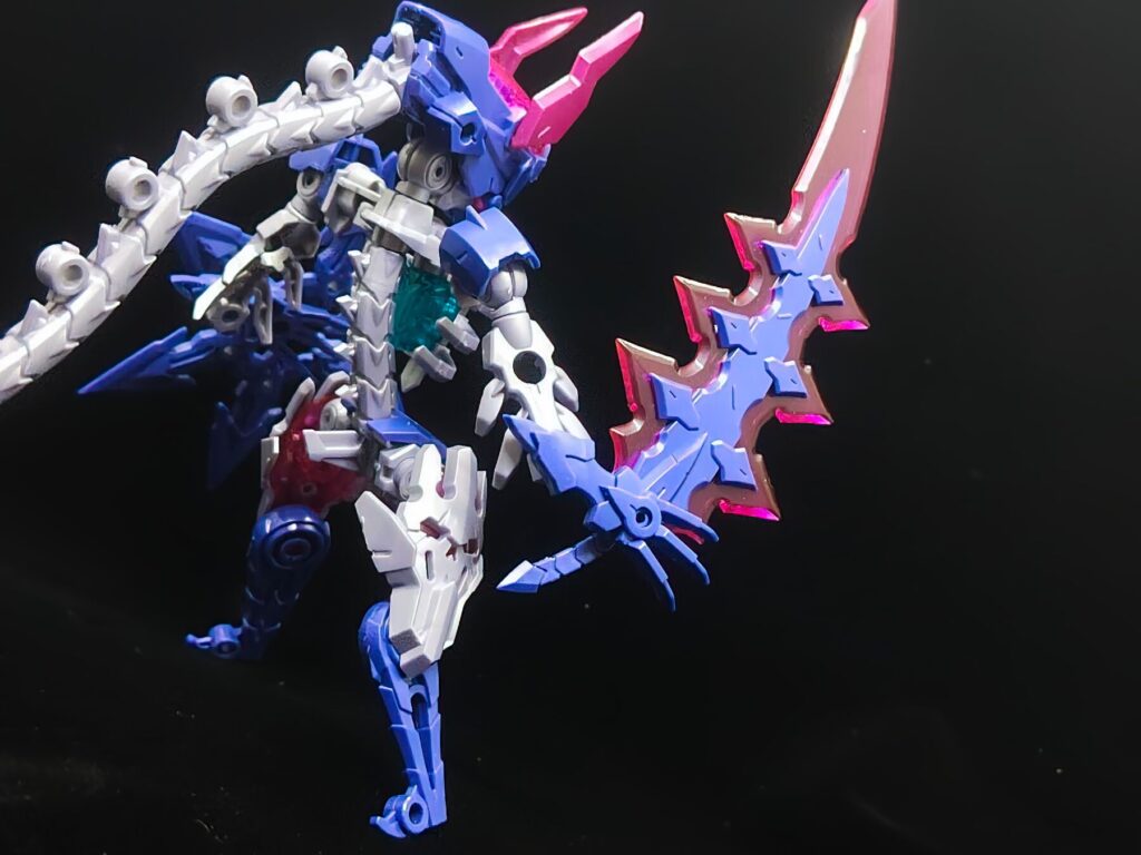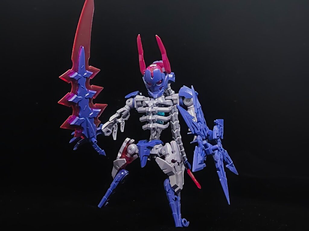 本キットの目玉、傀儡(くぐつ)召喚!巨大な鎌が分離・変形し、自律行動するお供の骸骨へと姿を変えます。