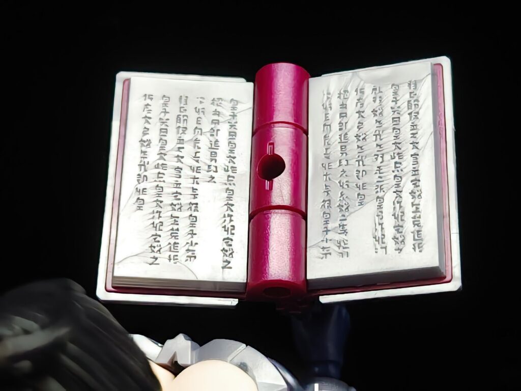 魔導書の細部。よく見ると魔法言語のような緻密な紋様が刻まれており、こだわりを感じるポイントです。