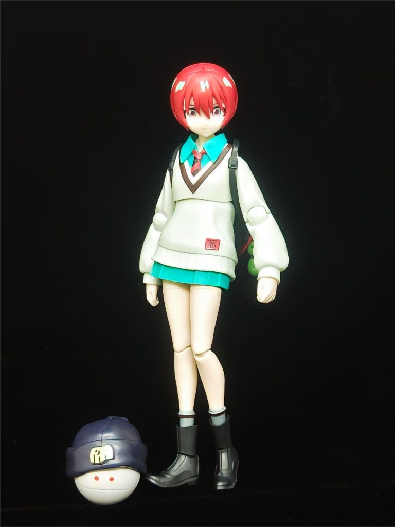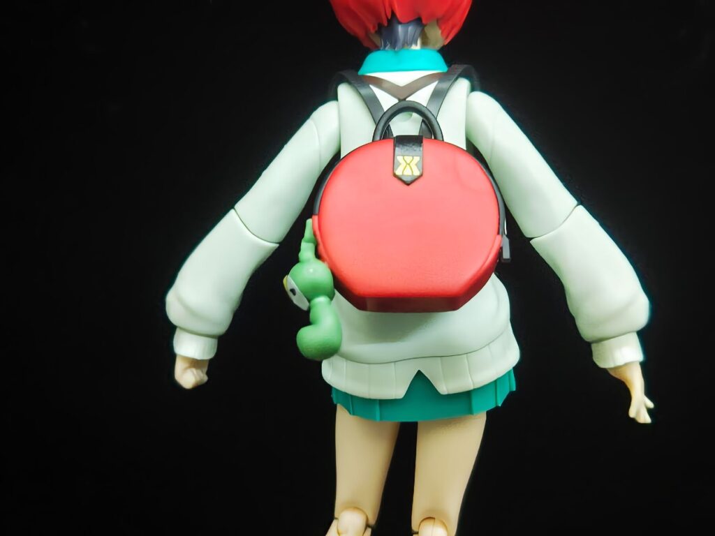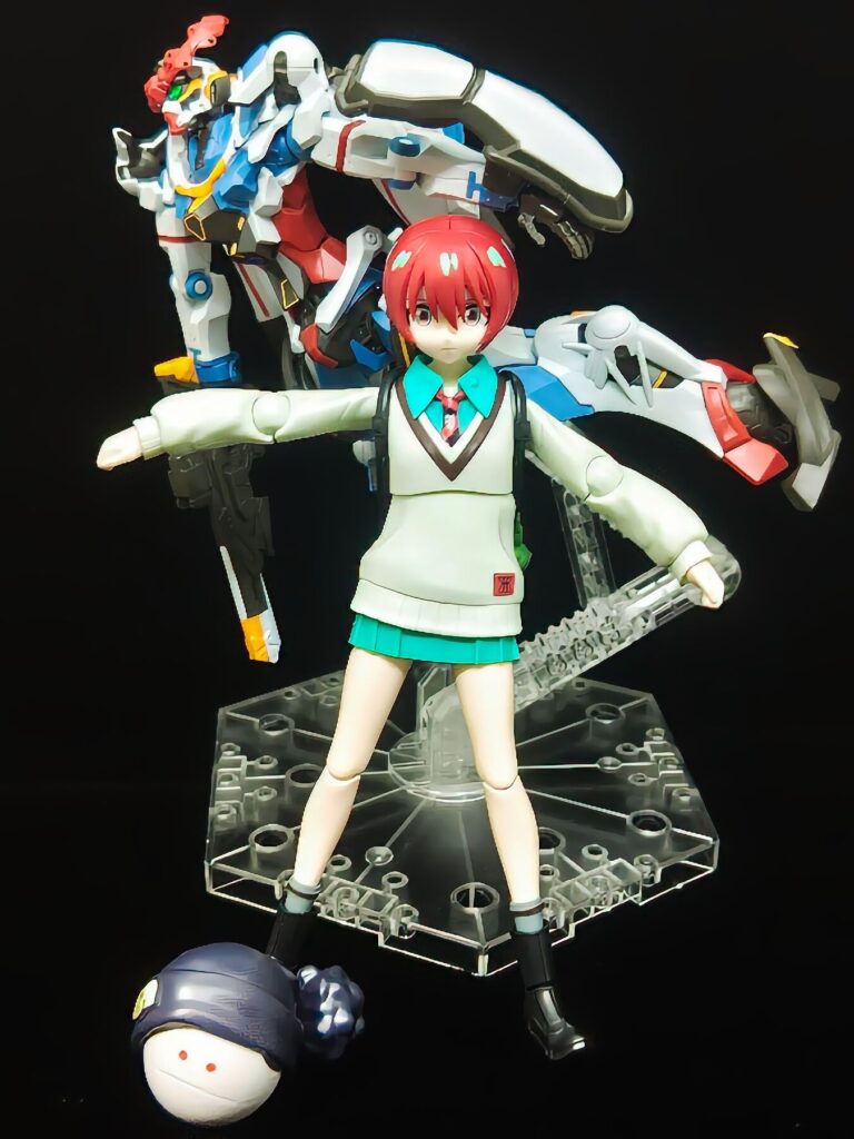 標準的な制服姿。マチュらしい活発なシルエットに、お供のハロ、そして通学カバンもしっかり再現されています。