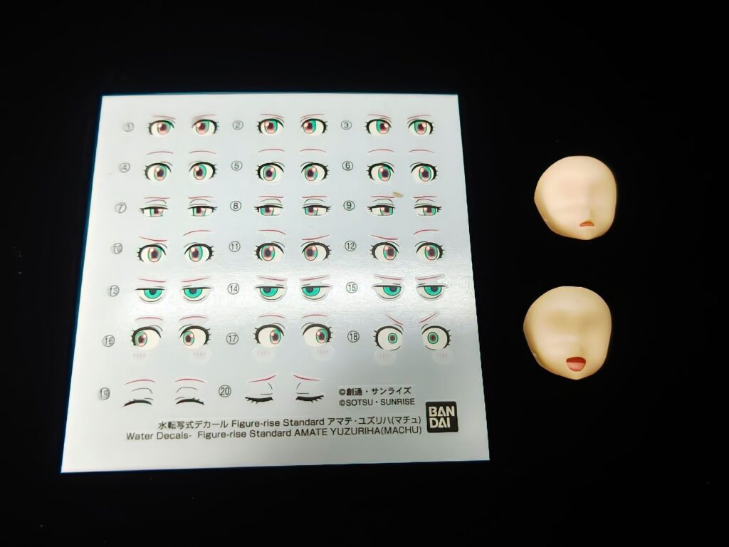 付属の水転写式デカール。表情の選択肢が多いのは嬉しいですが、失敗は許されない緊張感!練習を重ねて、最高の『ジト目』を完成させるのが今の目標です