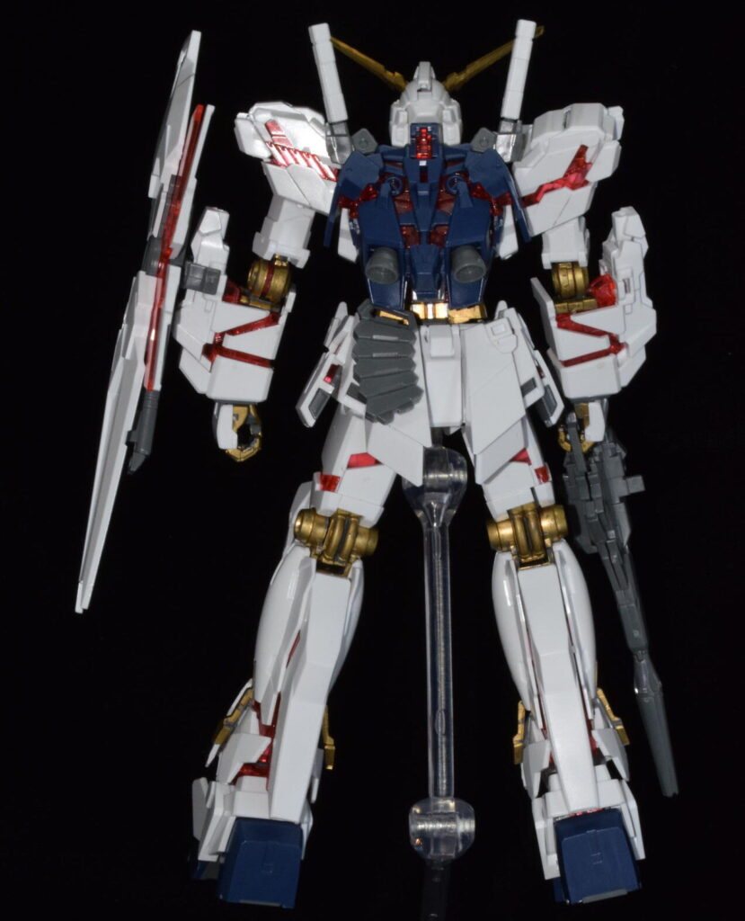 ユニコーンの主兵装であるビームマグナムを装備。さらに物語の終盤で活躍したシールドも、独特の形状が際立っていて格好良いです