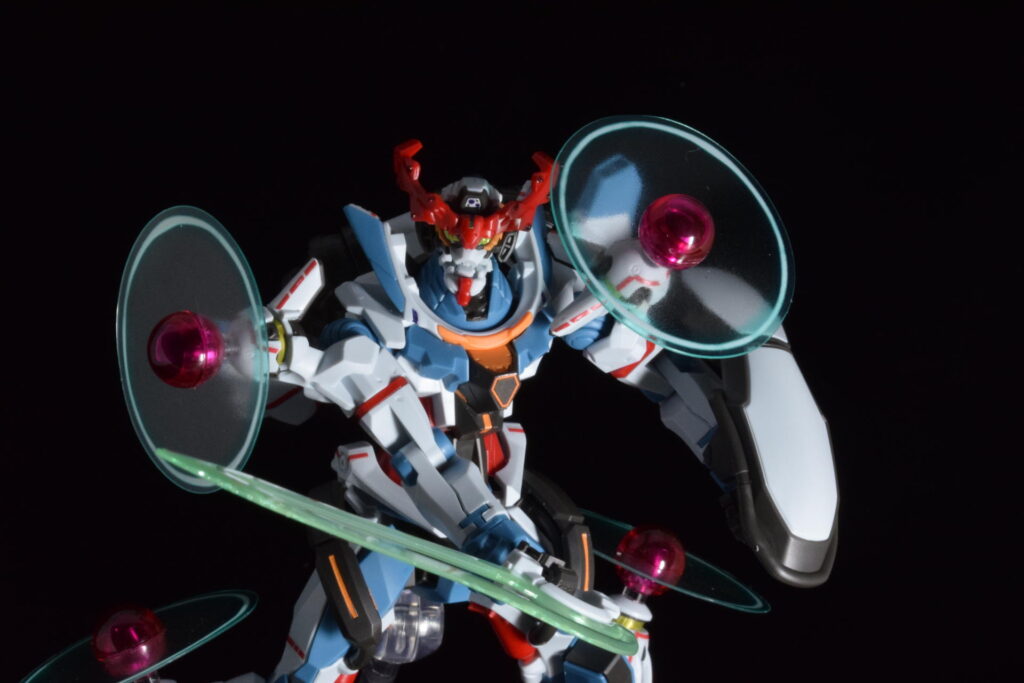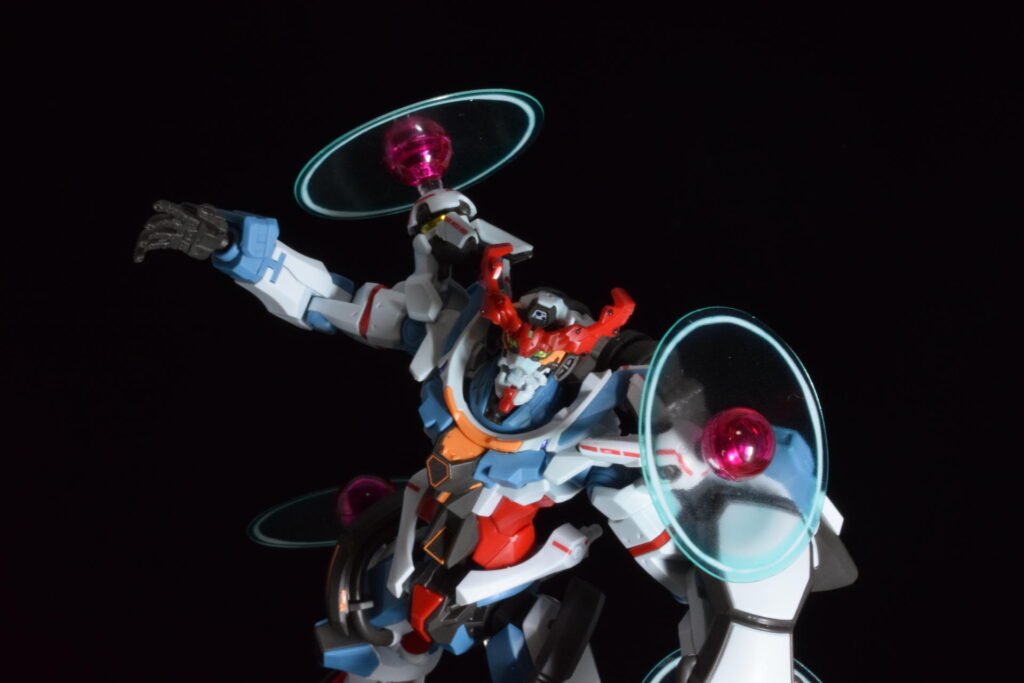 『攻め』に特化したジークアクスの本領発揮。アグレッシブなポージングが、この機体の持つ攻撃的なキャラクターをさらに引き立てます。覚醒によって強化された四肢の可動を活かし、空間を切り裂くようなダイナミックなアクションが実によく映えます。
