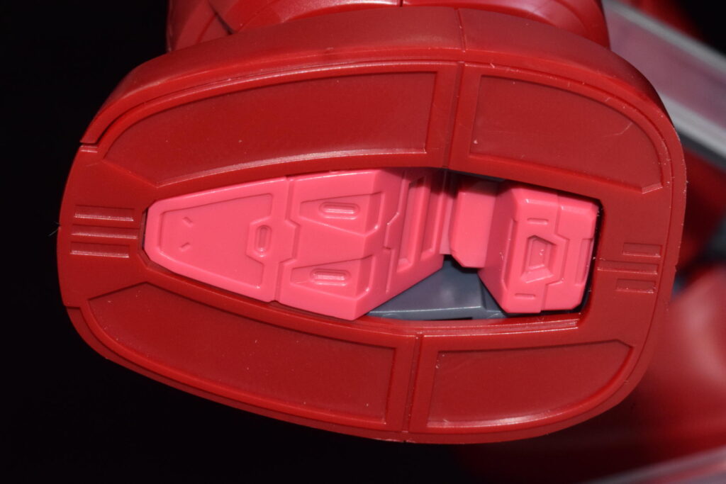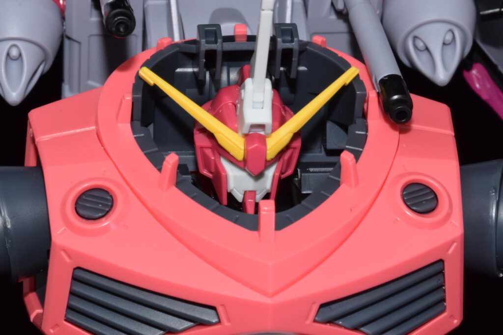 外装をパージすると、中から鋭い眼光を放つジャスティスの頭部が露出!まるで映画のワンシーンを見ているような興奮を味わえます。さらに芸が細かいのが足裏のディテール。チラリと覗くジャスティスの脚部パーツが、『確かにこの中にアイツがいる』という説得力を生んでいます(笑)