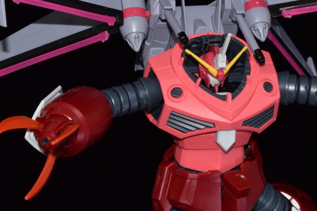ズゴックの頭部には破損風パーツも付属しています。インフィニットジャスティスのヘッドが微妙に見えています。