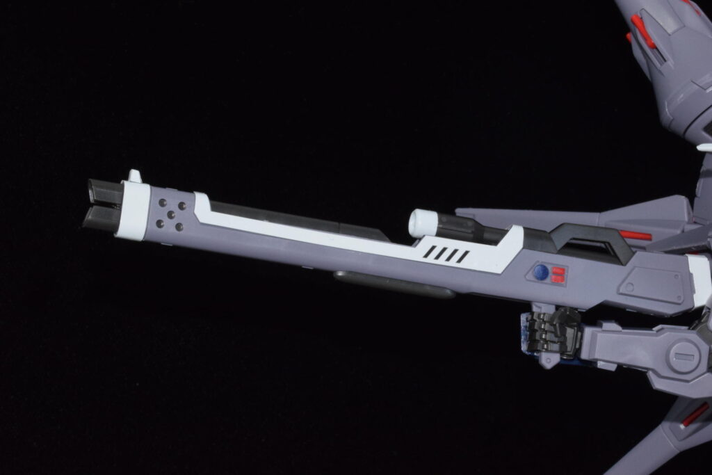 専用のビームライフルを構えさせてみました。機体のボリュームに負けない存在感のあるデザインが好みです
