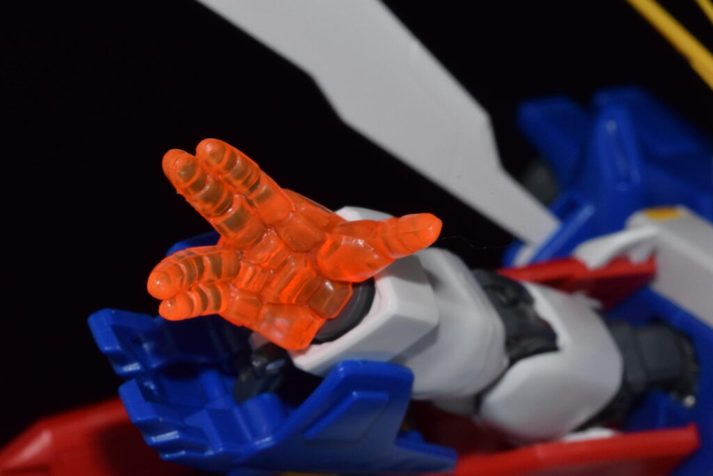 必殺の『爆熱ゴッドフィンガー』を再現するクリアオレンジのパーツ。エネルギーが凝縮されたような質感が最高です。