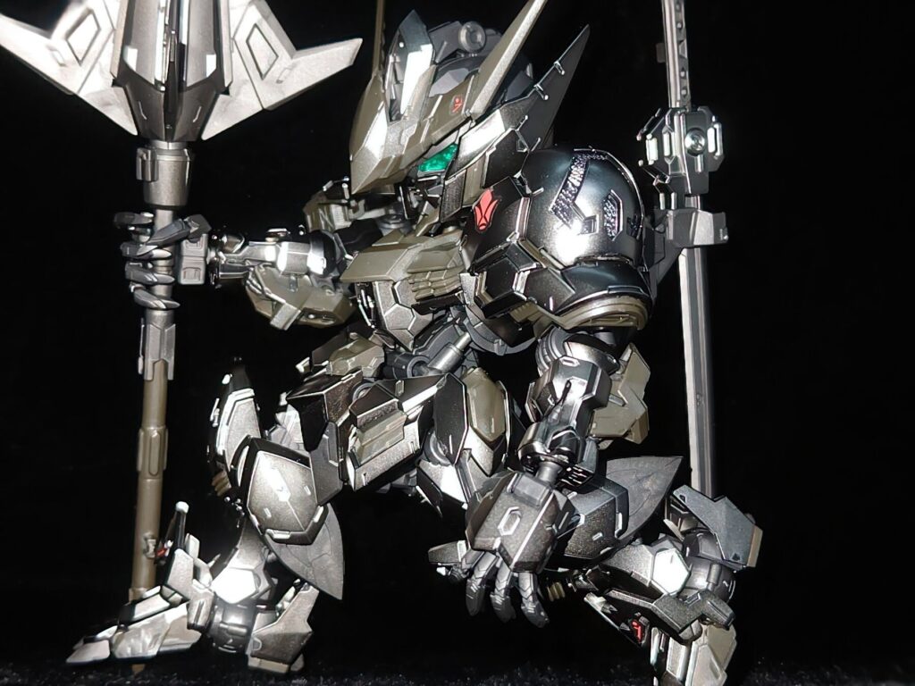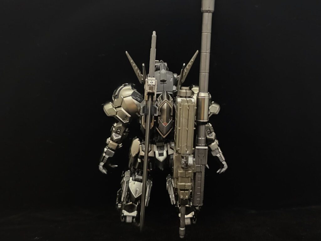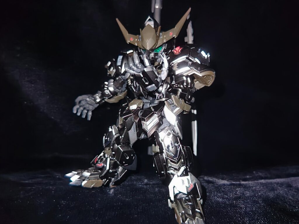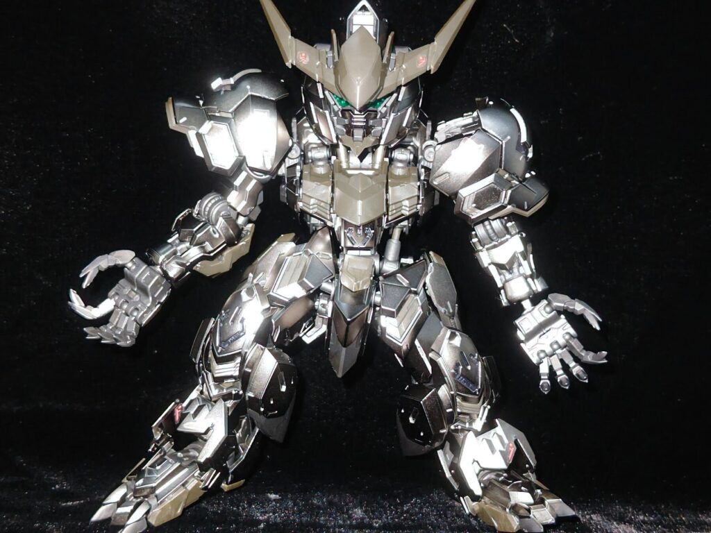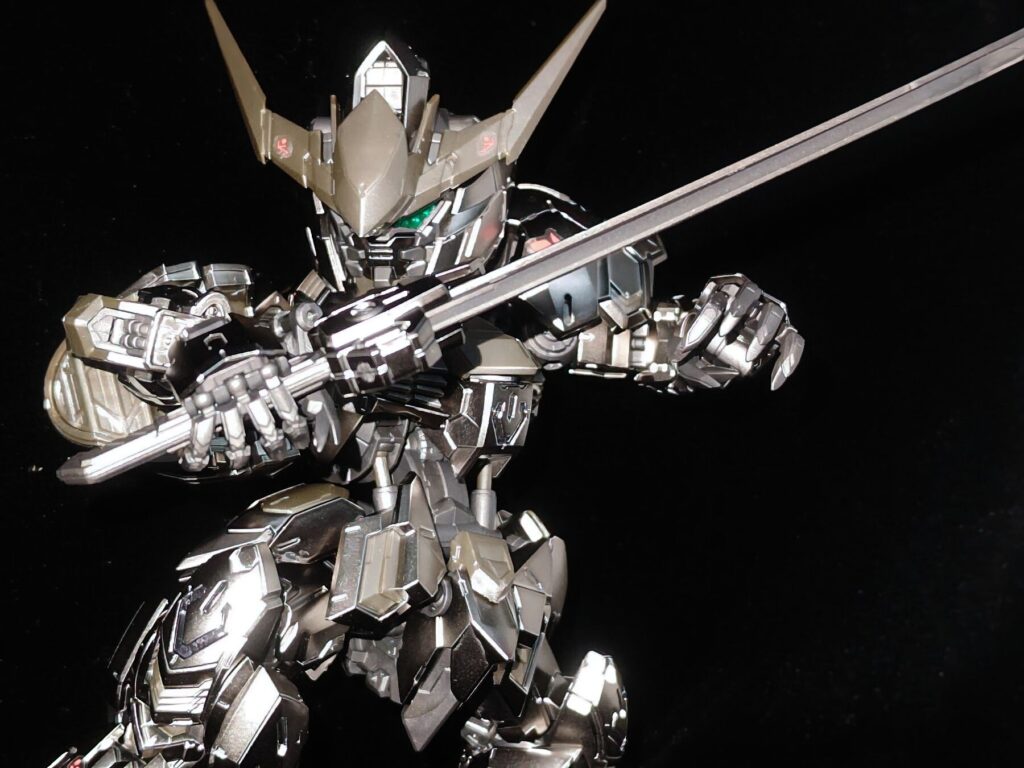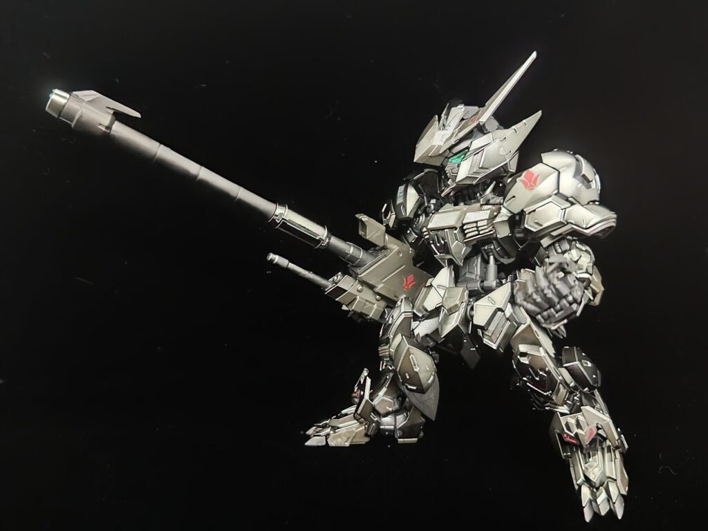 全身の立ち姿。派手なシルバーではなく、重厚感のある『鈍い銀色の輝き』が、バルバトスの持つ荒々しさを際立たせています。