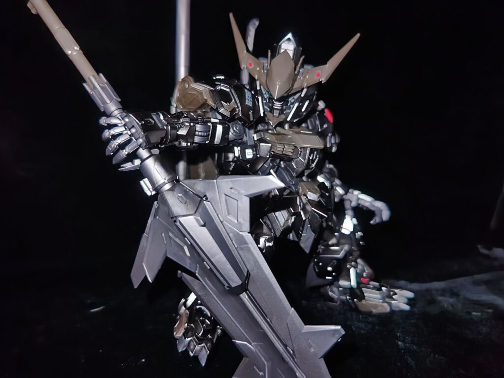ゲート跡すらも演出の一部にしてしまうバルバトスのキャラクター性は、コーティングキットと相性抜群ですね。MGSD特有の可動域の広さのおかげで、重厚な質感を保ったままダイナミックなポージングが決まる、最高に贅沢なプラモ体験でした!