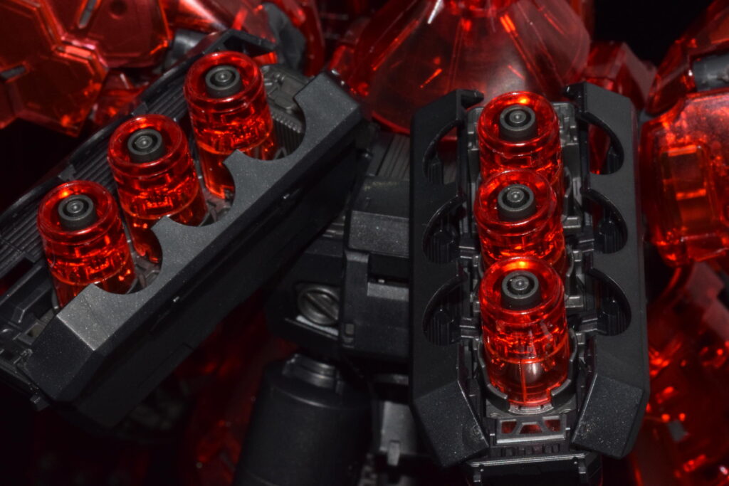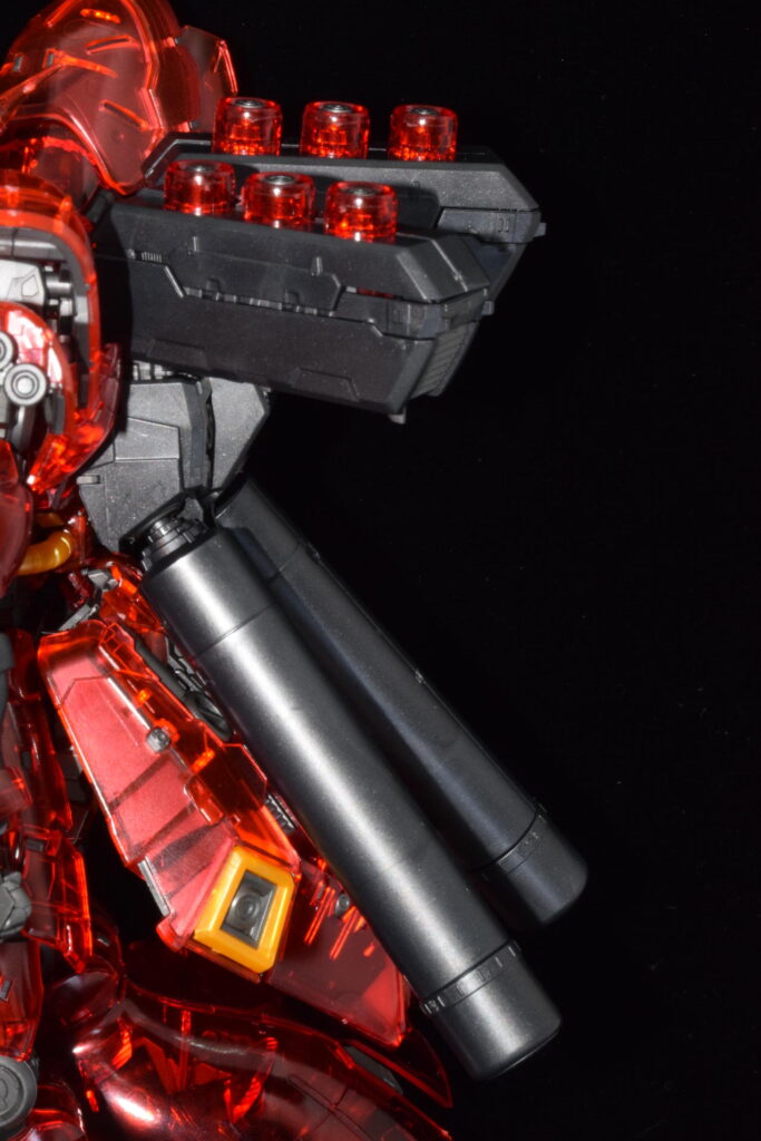 背部のバックパックには、サザビーの象徴ともいえるファンネル・コンテナを装備しています