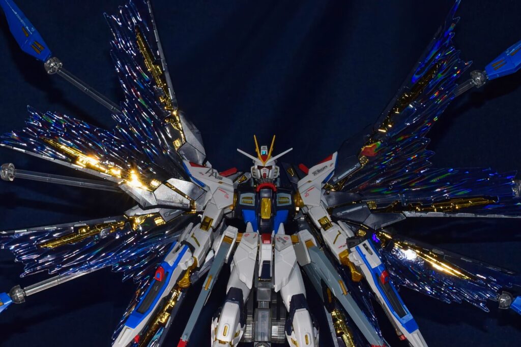 翼のエフェクトとドラグーン展開を合わせた、最大火力のフルバースト。これこそがストライクフリーダムの真骨頂といえる迫力ある姿ですね