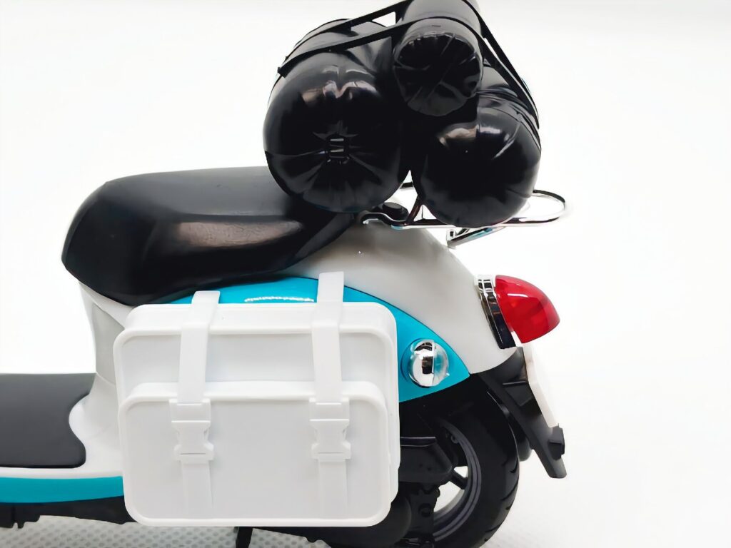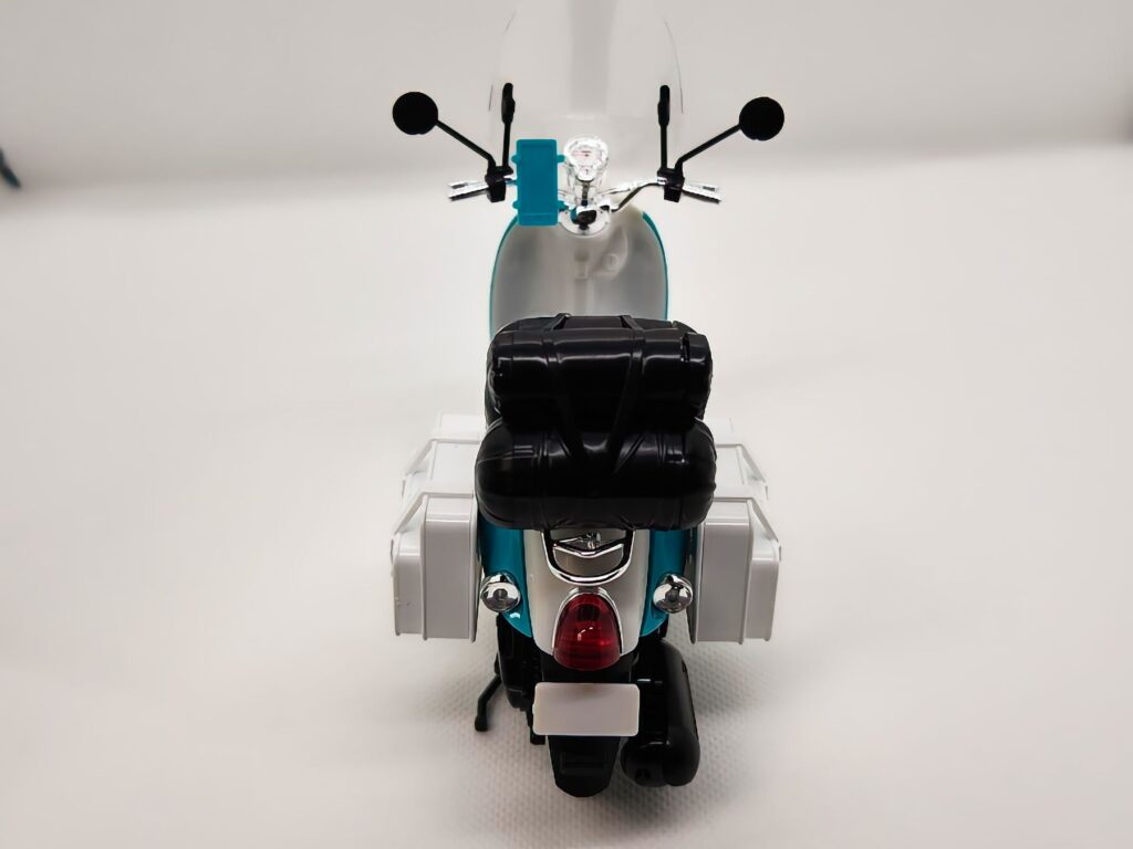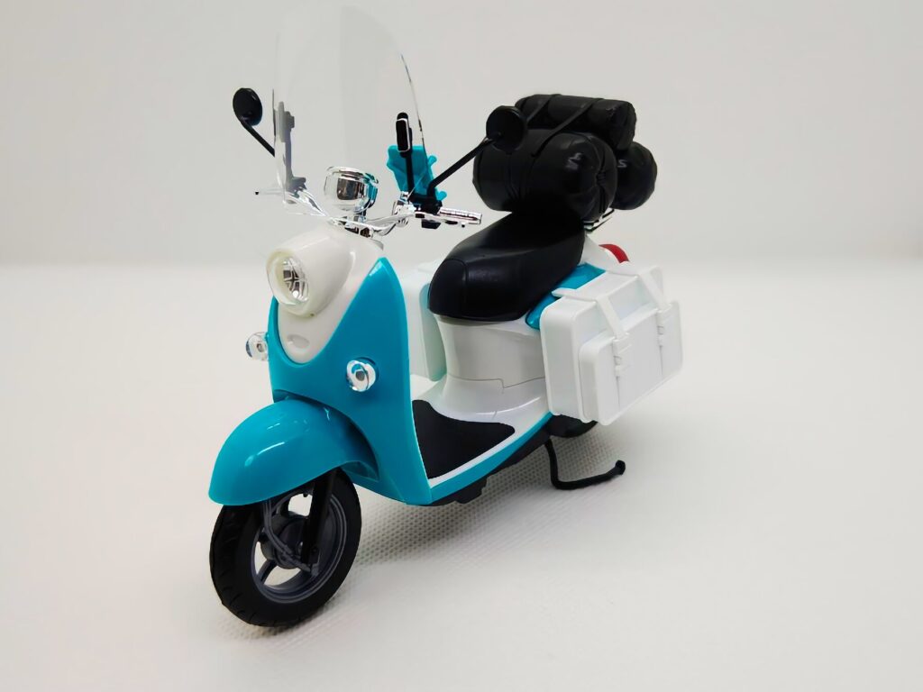 劇中の雰囲気を忠実に再現したスクーター本体に加え、積載されたキャンプ道具一式、ヘルメット、さらには志摩リンのペーパーフィギュアまで付属している豪華な内容となっています。
