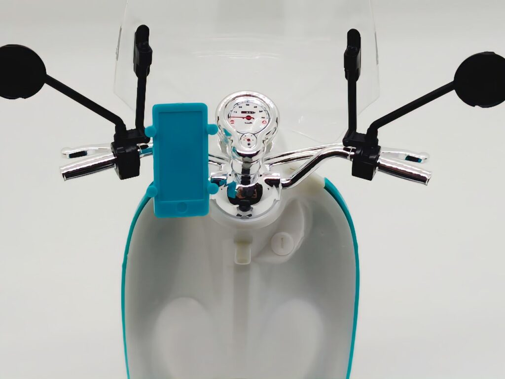ハンドル周りには、現代のツーリングには欠かせないスマートフォンホルダーもしっかりと再現されています